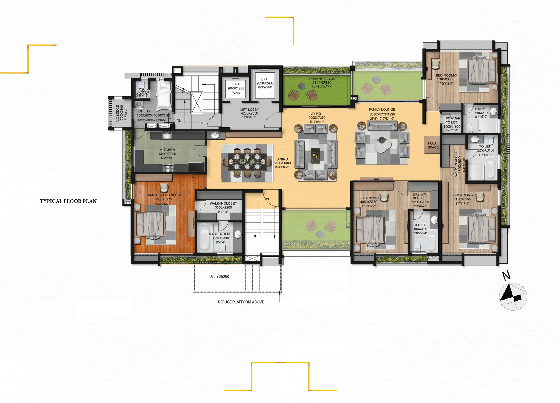 Hungerford House, observed for its exclusivity and privacy, boasts of a beautifully designed, landscaped rooftop, pampered with amenities like no other. With only 11 families residing in this four sides open, spacious building, each family occupies one floor. Enjoy privacy in this primely located, purely residential project, with easy access to the world around you.